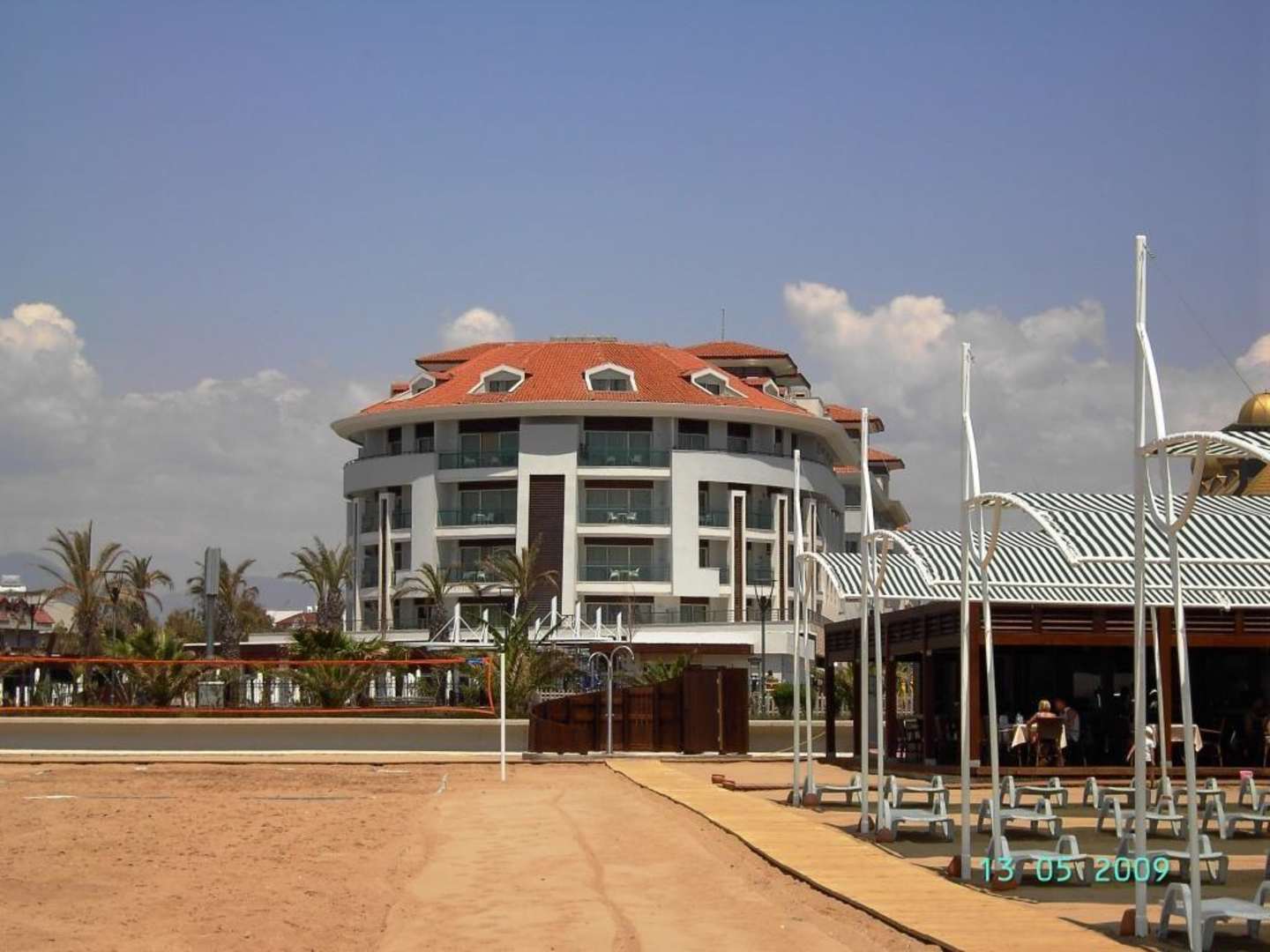 Bilck vom Strand auf Hotel