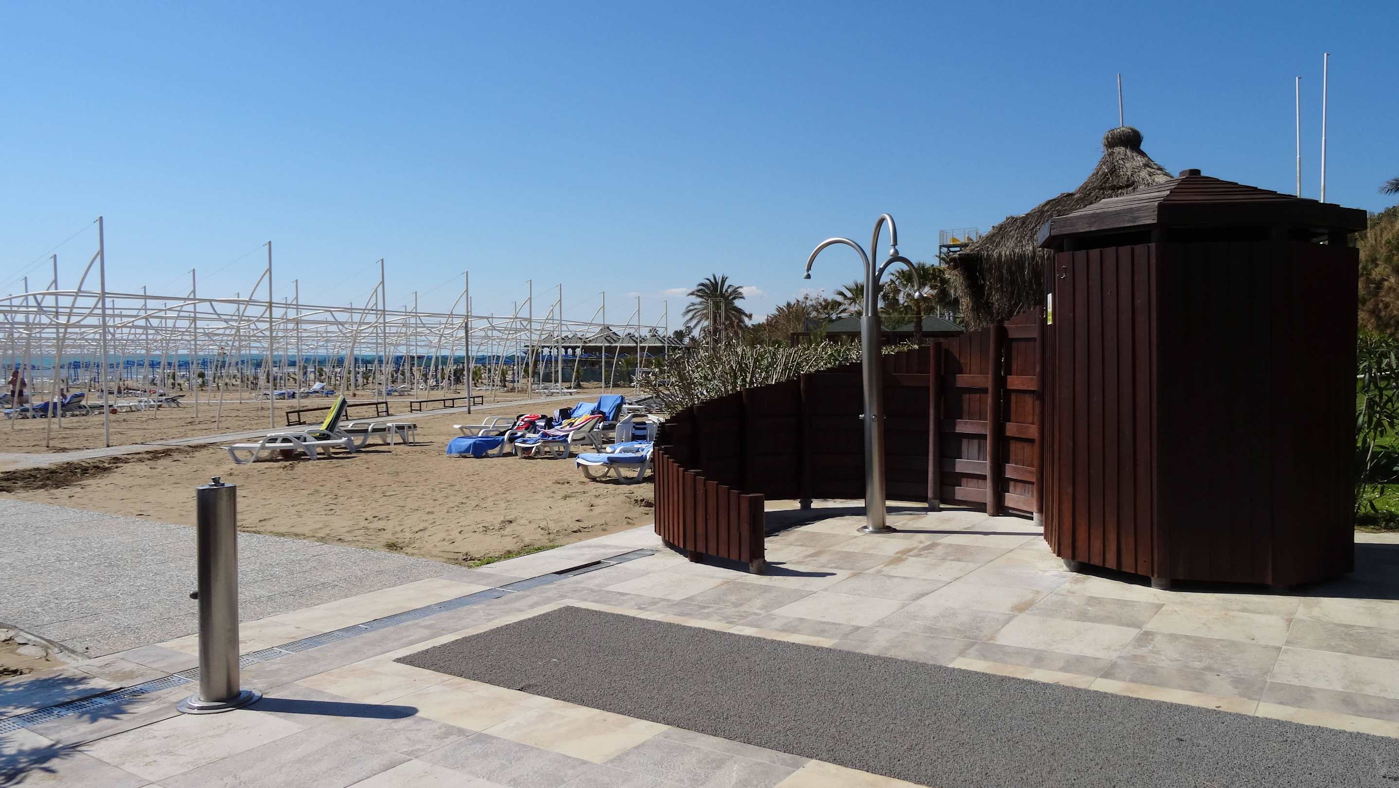 Dusche und Umkleide am Hotel-Strand
