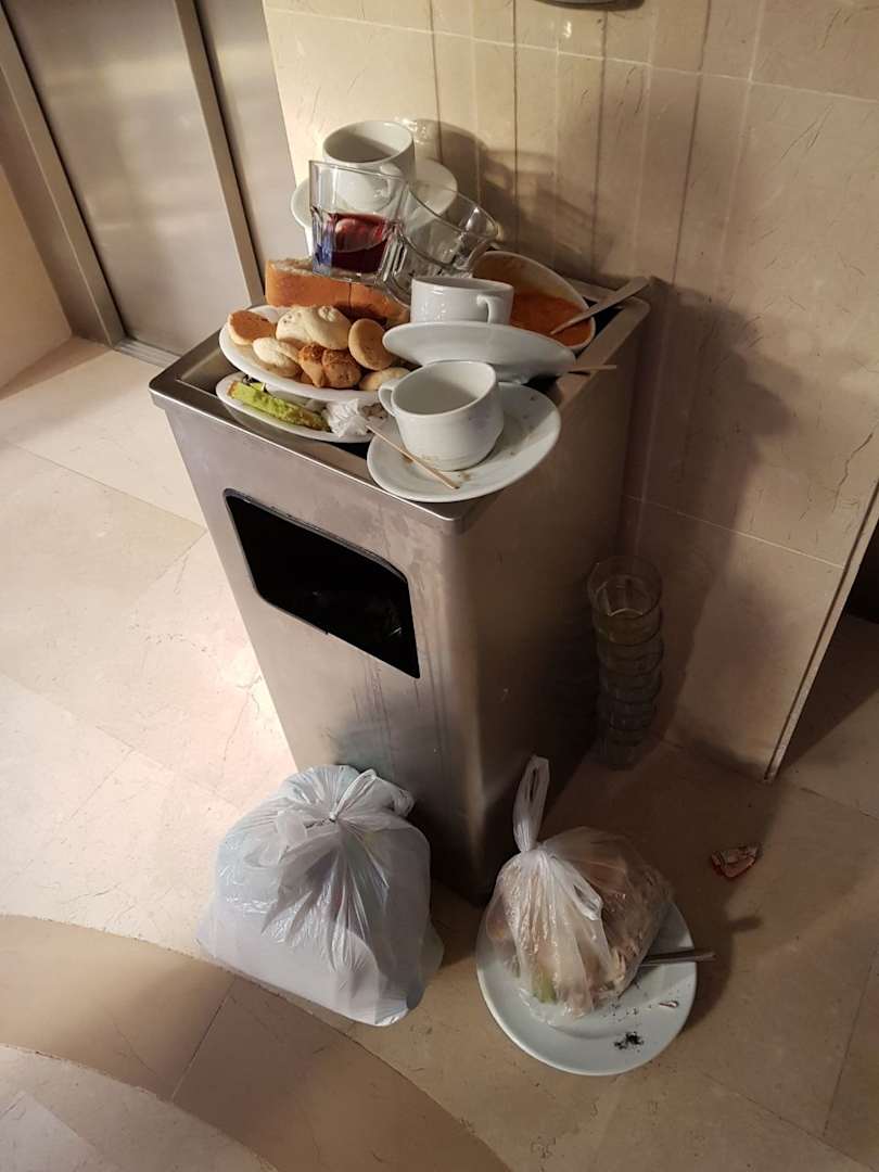 Die Mülleimer vor den Aufzug.