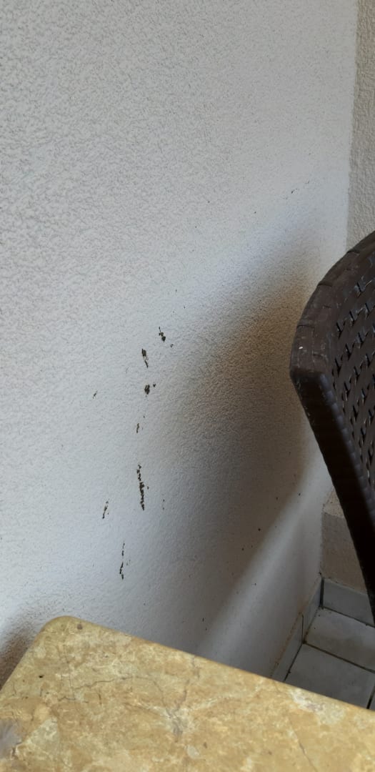 Auch die Wände des Balkon verschmutzt
