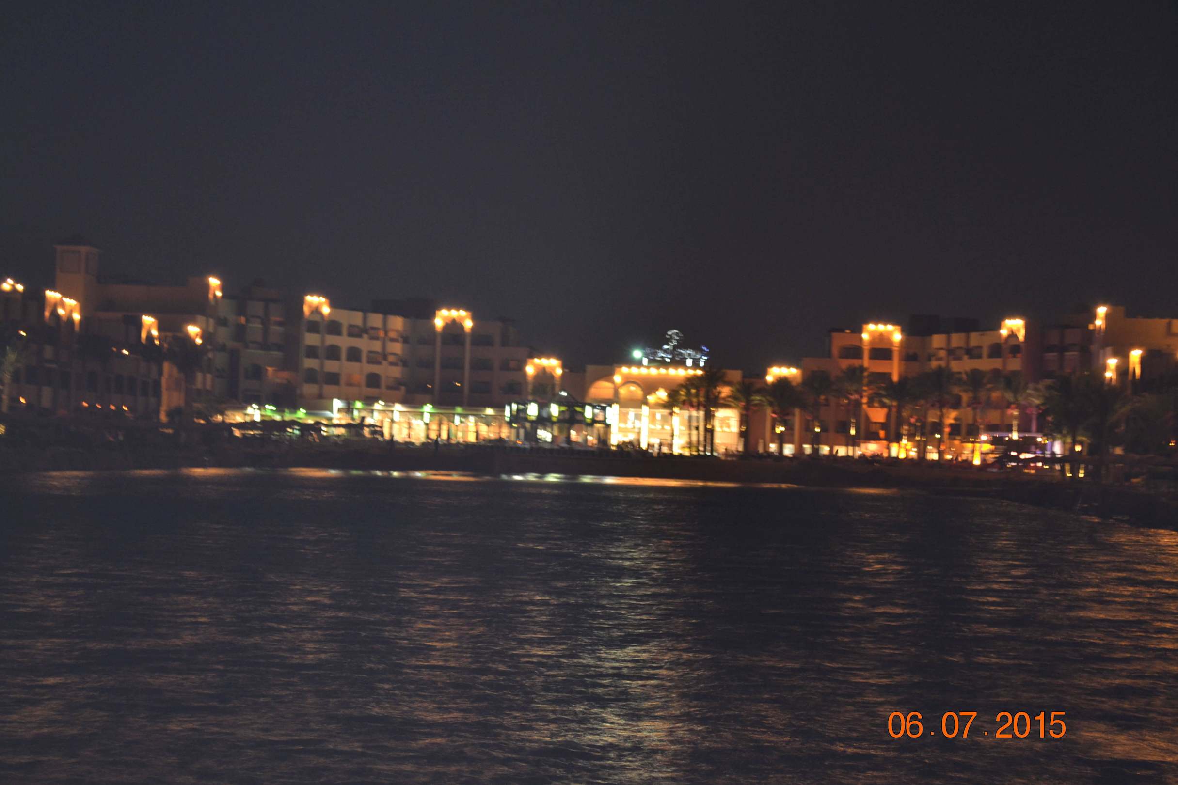 Отель в свете огней (вид от лагуны)