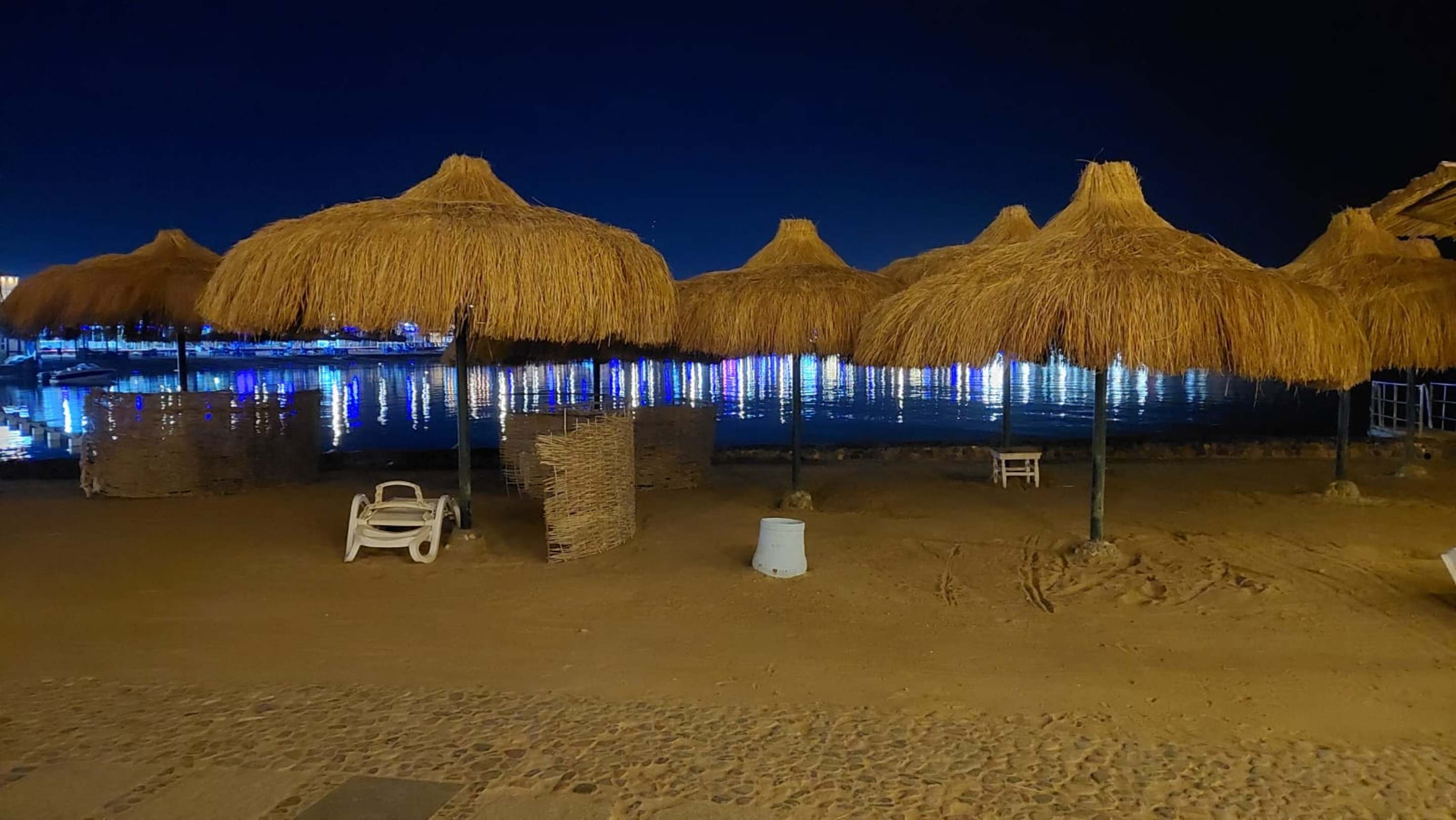 Strand by night , vor dem hotel