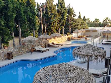 Im Innenhof befindet sich der Pool. Es gibt auch ein separates Kleinkind-Becken.