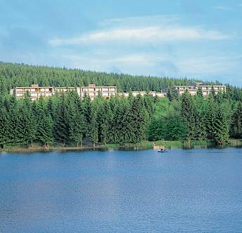 Blick vom See zum Sunotel Kreuzeck