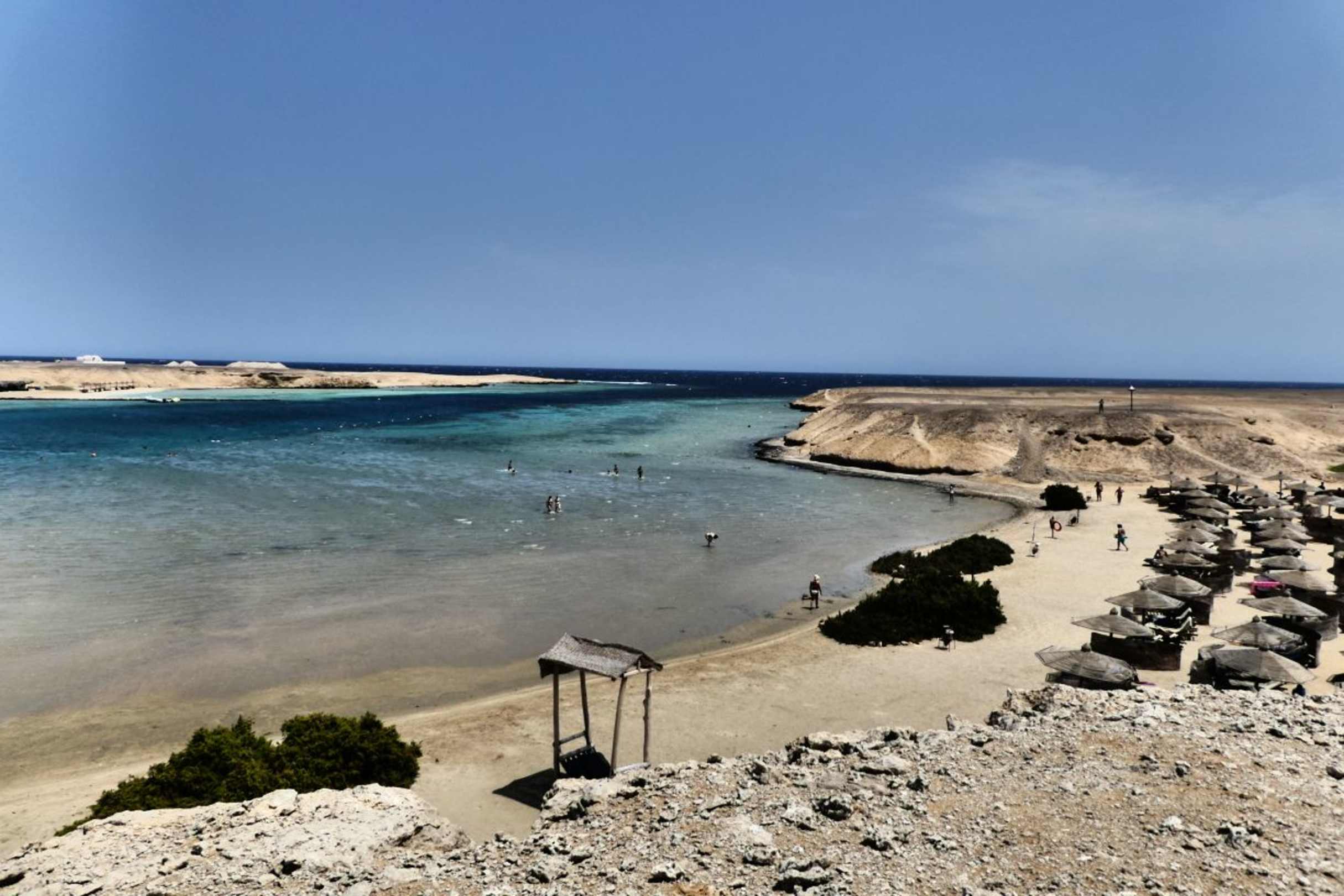 Feiner Sandstrand der sehr flach bis zum Riff führt. Dank dessen das die Bucht so weit hineinführt, ist das herrliche Riff mit den unzähligen Fischarten und Korallen riesig. Der Service am Pool vom Hotel ist Top !