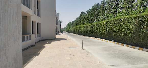 Weg hinter den Zimmern Richtung Rezeption