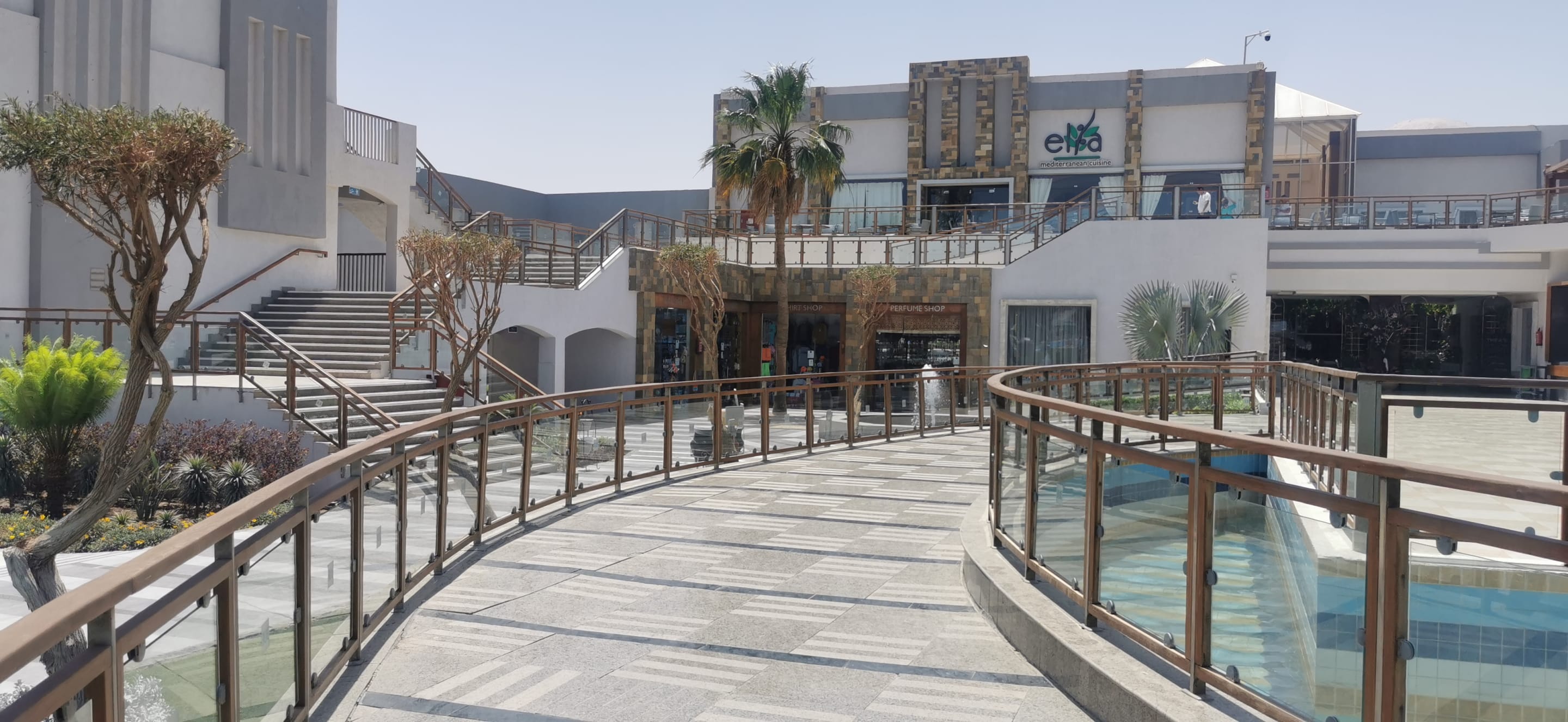 Springbrunnen vor der Außenterrasse des Mainrestaurants