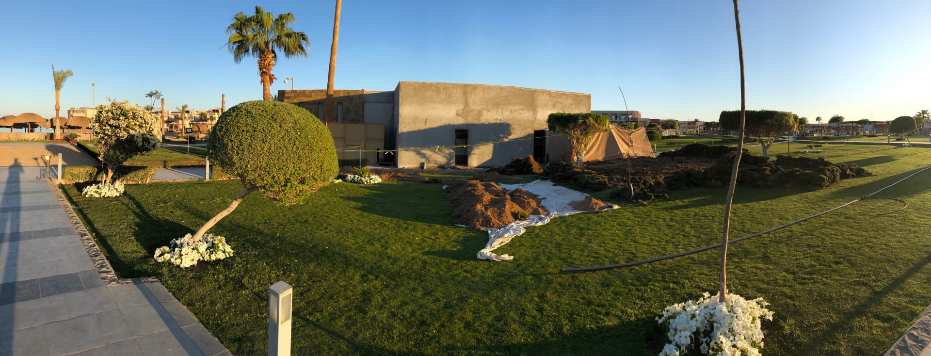 Bauarbeiten zwischen Lagune und Pool beim Restaurant