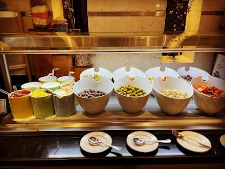 Buffet - Oliven, Zwiebeln, Peperoni usw. und Soßen