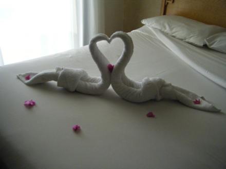 When are room was cleaned the cleaner would leave our towels in forms of animals.