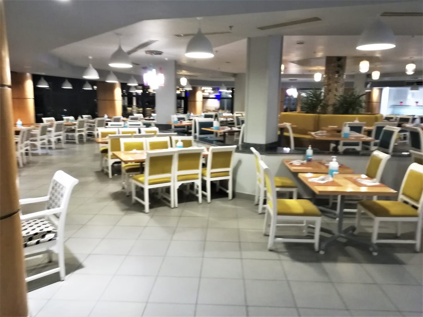 Blick Hauptrestaurant hier war immer zu den Mahlzeiten der Bär los dreckige Sitzflächen,Coronamaßnahmenein Witz genauso wie die verlangte Bekleitung!!!