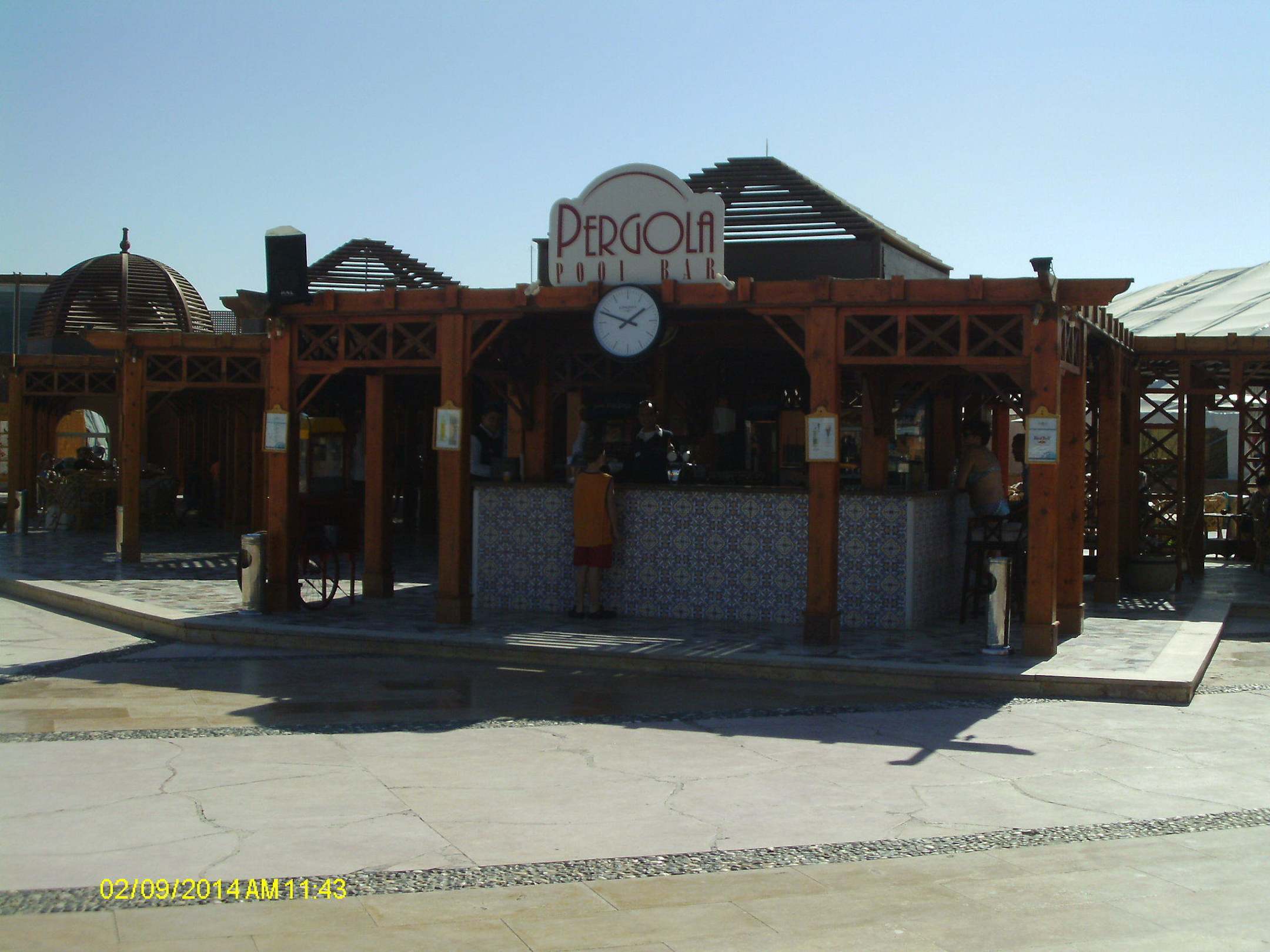 Pool to the left bar and restaurannts to the right