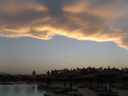Sonnenuntergang am Pool mit Wolken
