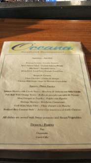 Speisekarte im "Oceana"