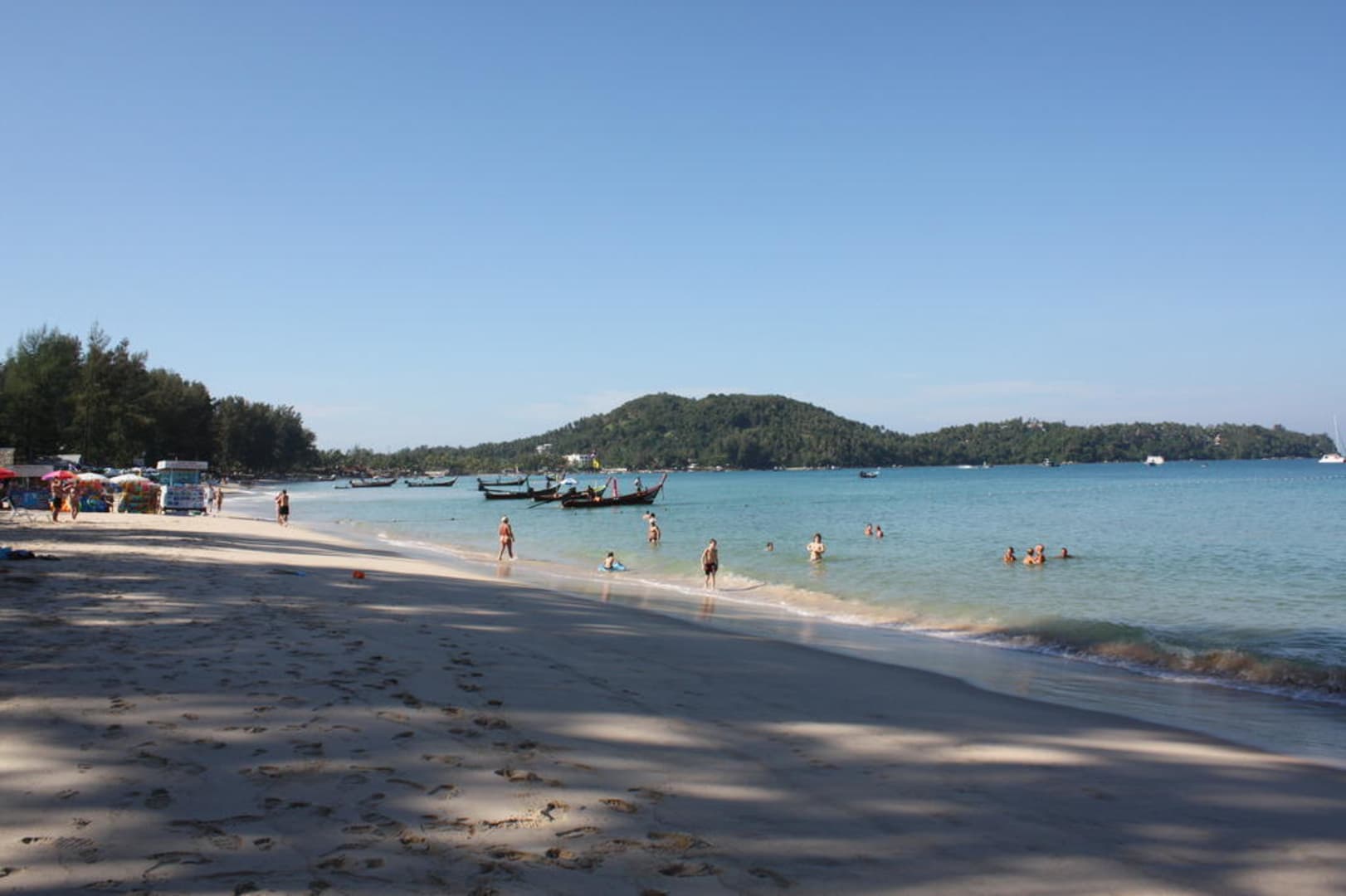 Blick nach links, Richtung Best Western Hotel u.a.. Auch in diese Richtung gab es mehrere gute Strandrestaurants und Ausflugsagenturen am Strand.
