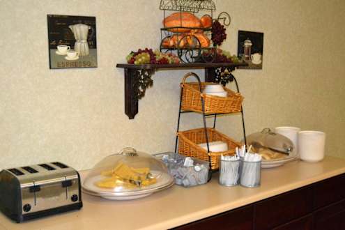 Toaster, Waffeln und Bagles beim Frühstücksbüffet