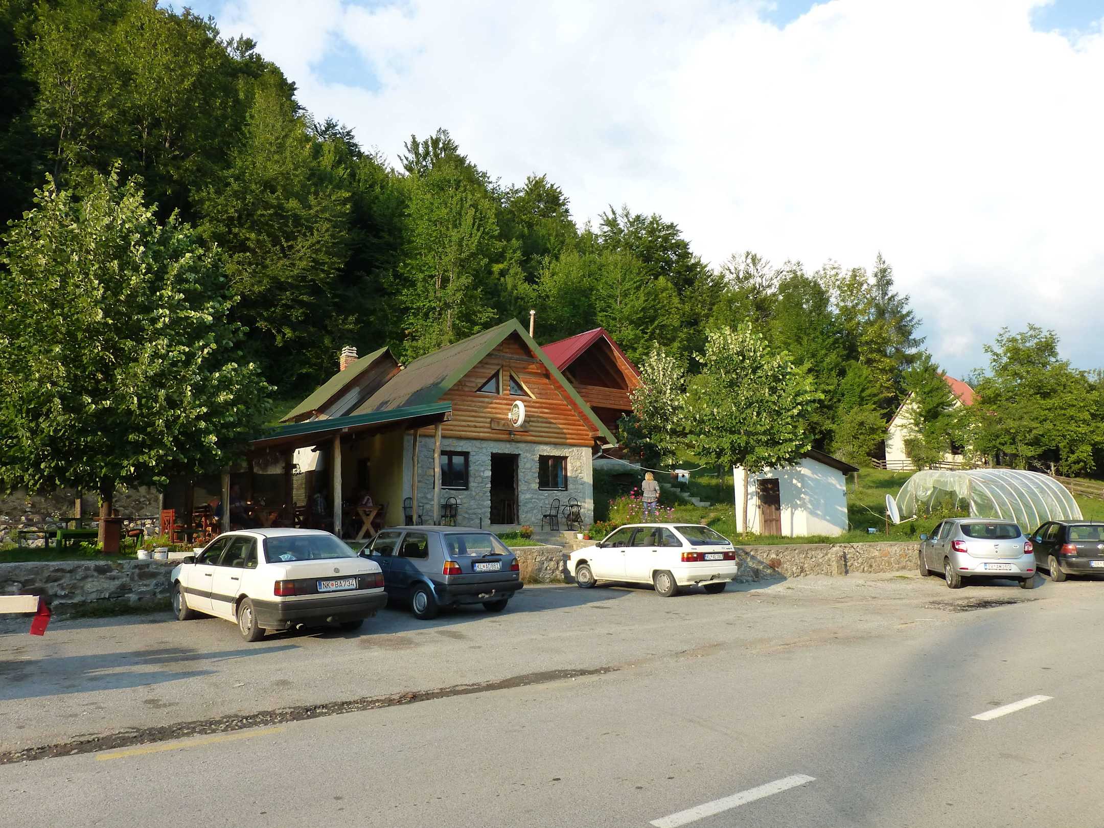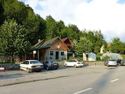 Von der Straße aus gesehen, vorne die Parkplätze