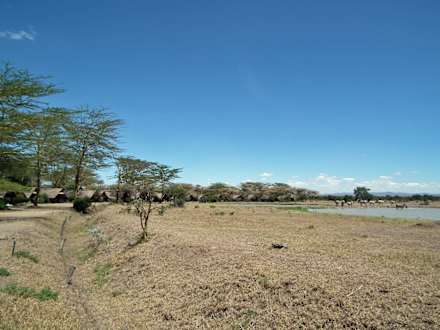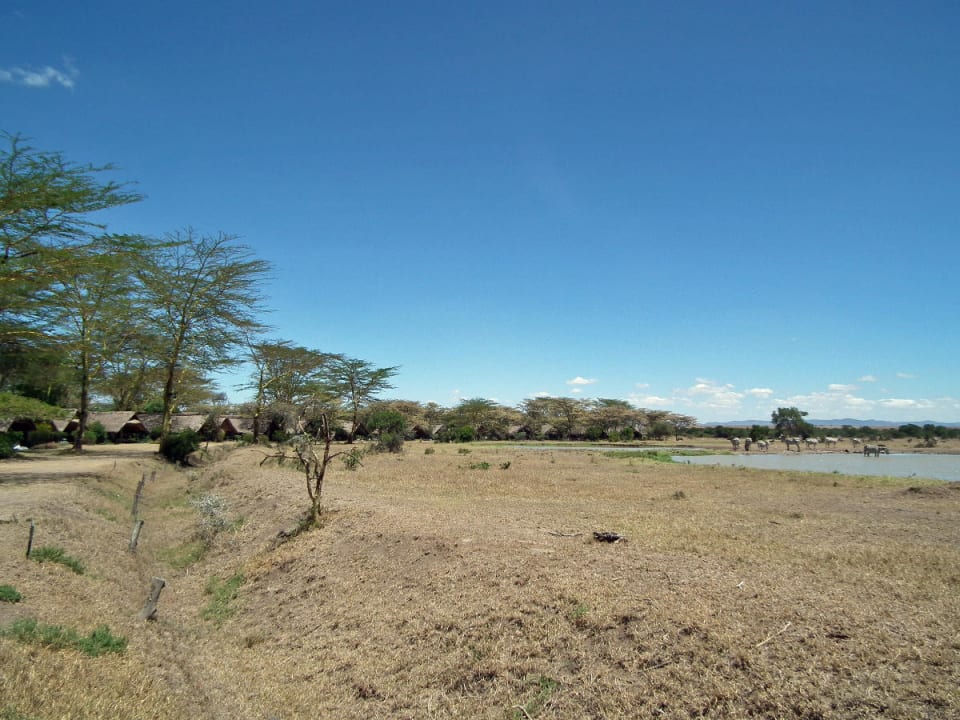 Blick auf die Zelte und das Wasserloch