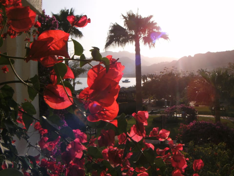 Traumhafter Blick, durch die Blumen aufs Meer und Berge.
