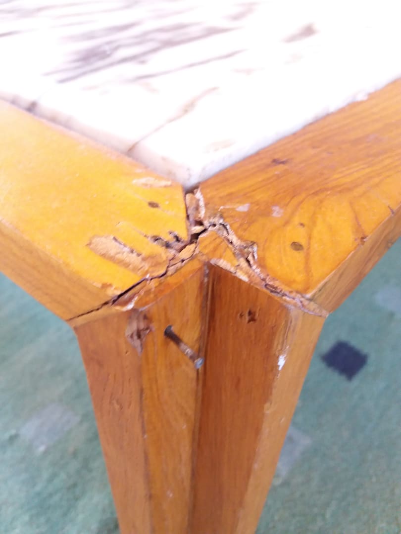 screw coming out of the table. Injured my father leg.