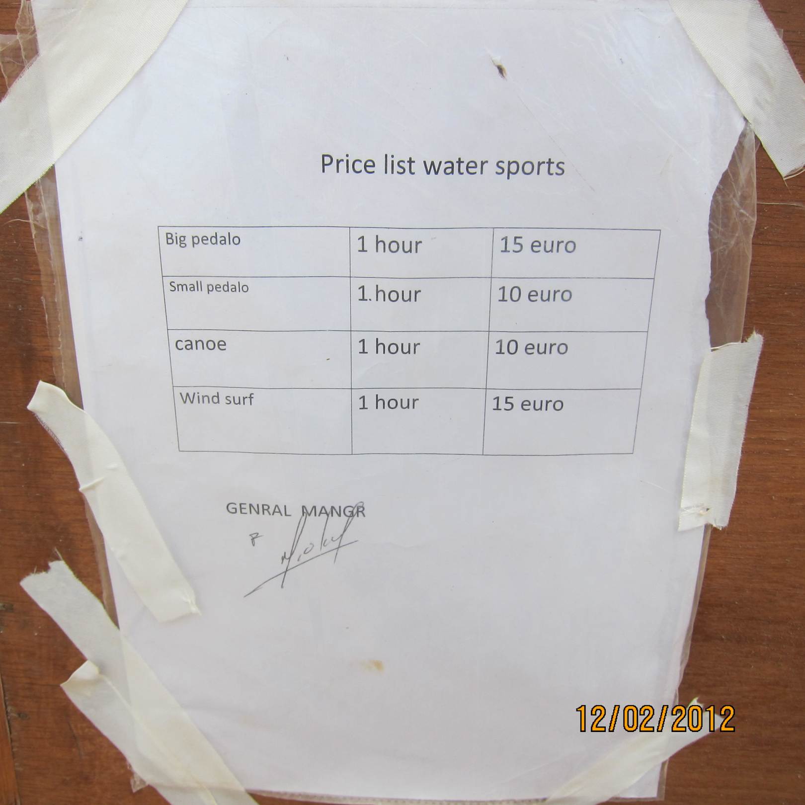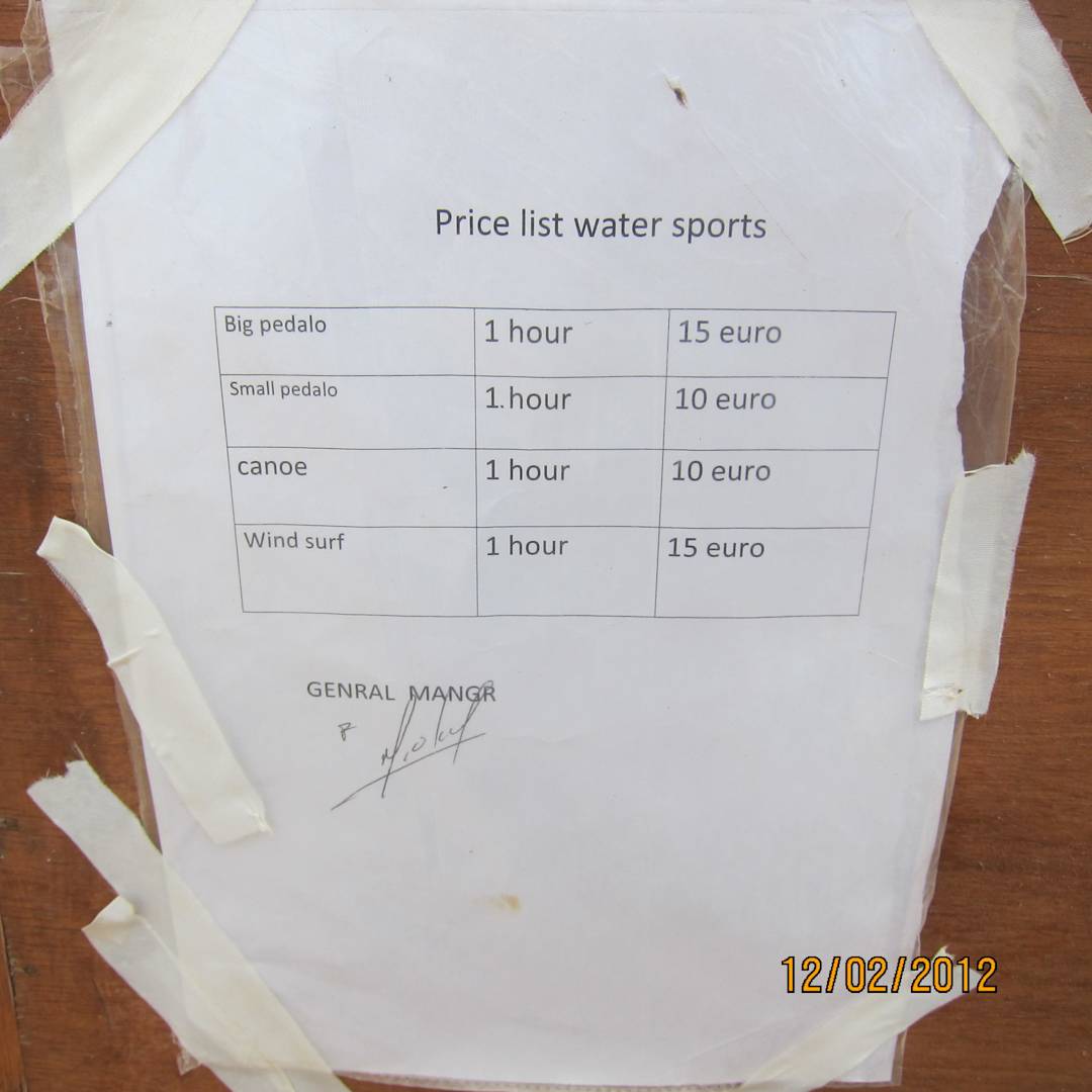 Cennik sprzętu wodnego Swisstouch Oriental Resort Marsa Alam