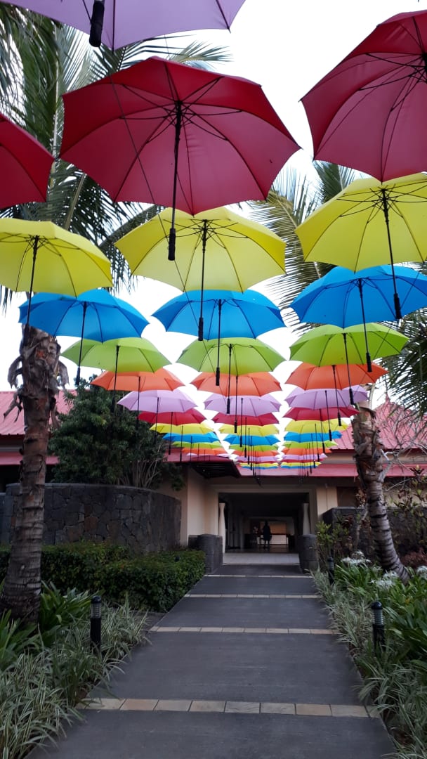 Gut "beschirmt" auf dem Weg zur Rezeption