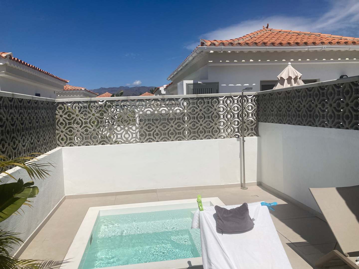 Einige Bungalows haben einen kleinen Pool , ist was zum Abkühlen im Sommer . Aber nicht notwendig, da zwei Pools vorhanden und der Weg dahin kurz ist. Daher kann man auch gut auf der eigenen Terrasse liegen.