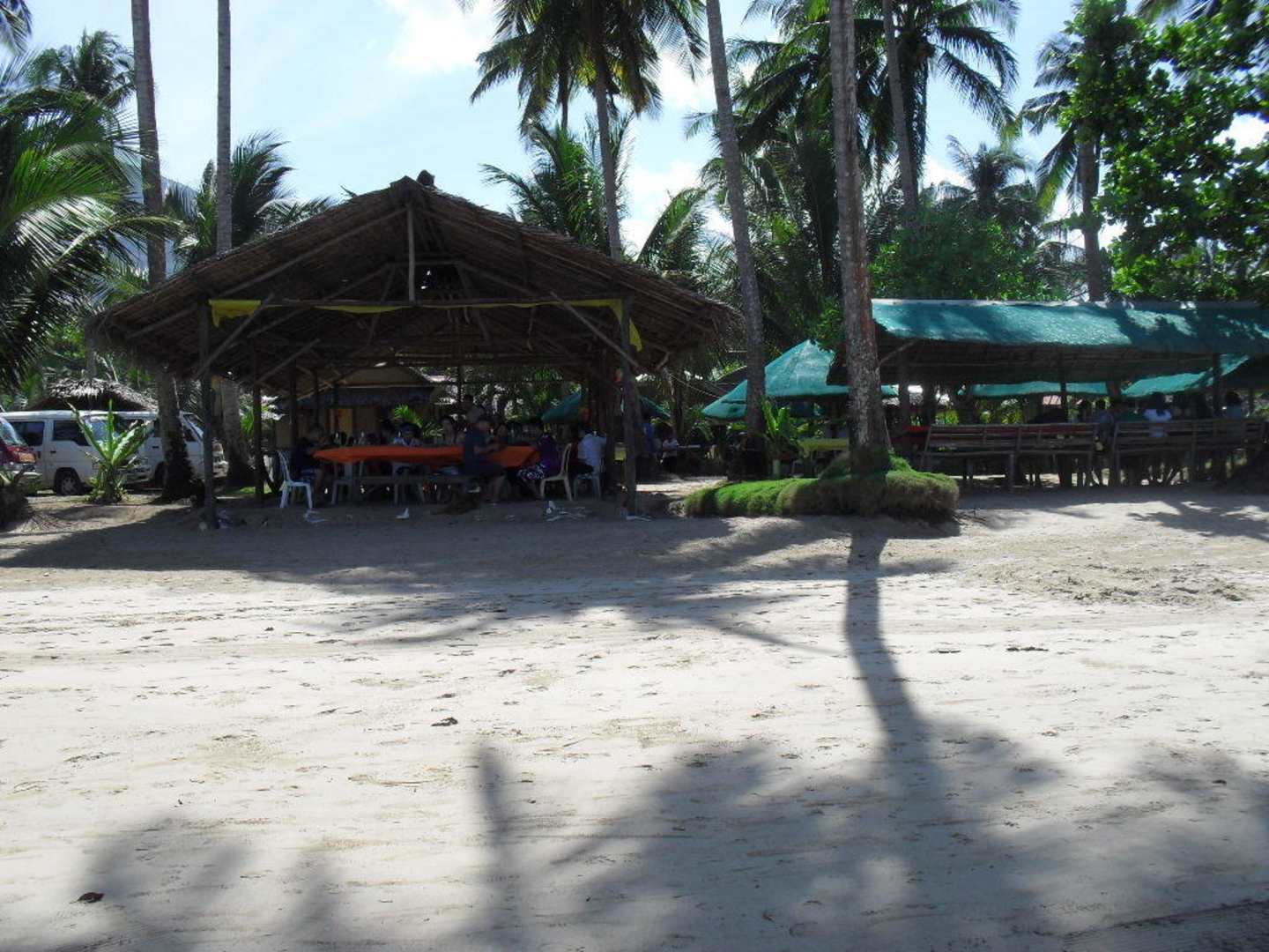 Vorne das open air Restaurant am Strand