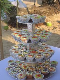 Die Hochzeits Kleinkuchen sind schon aufgebaut