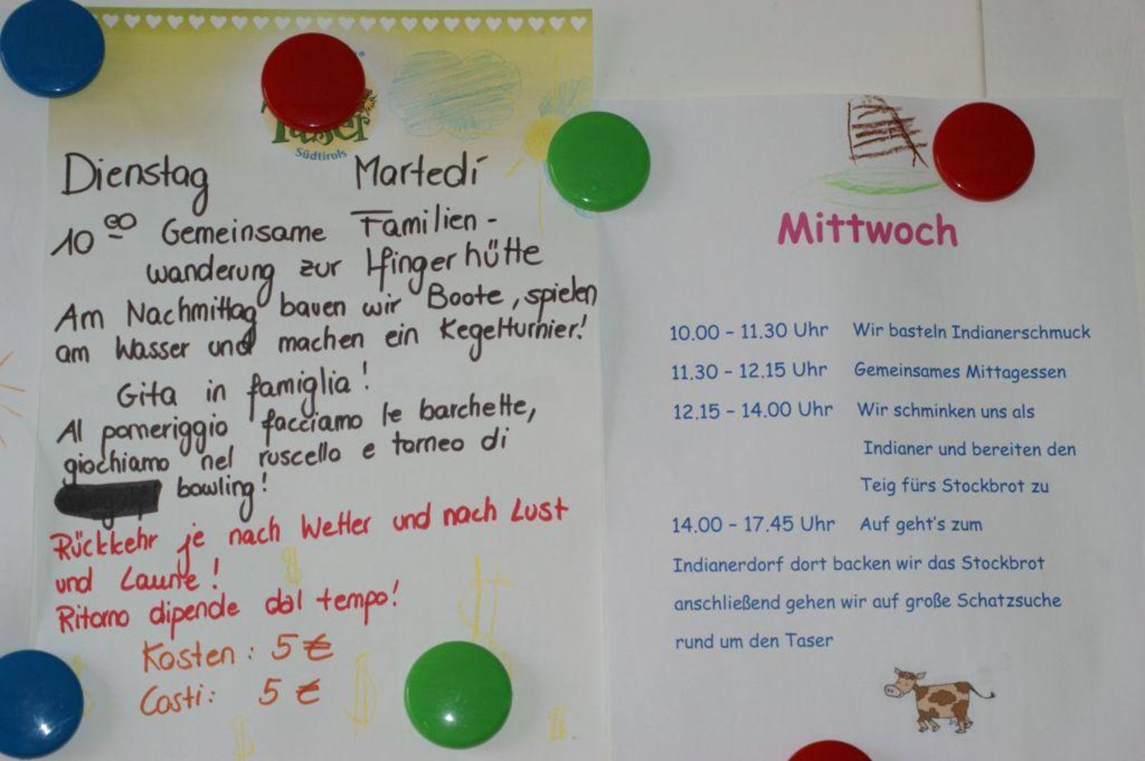 Kinderbetreuung, Programm von Dienstag und Mittwoch