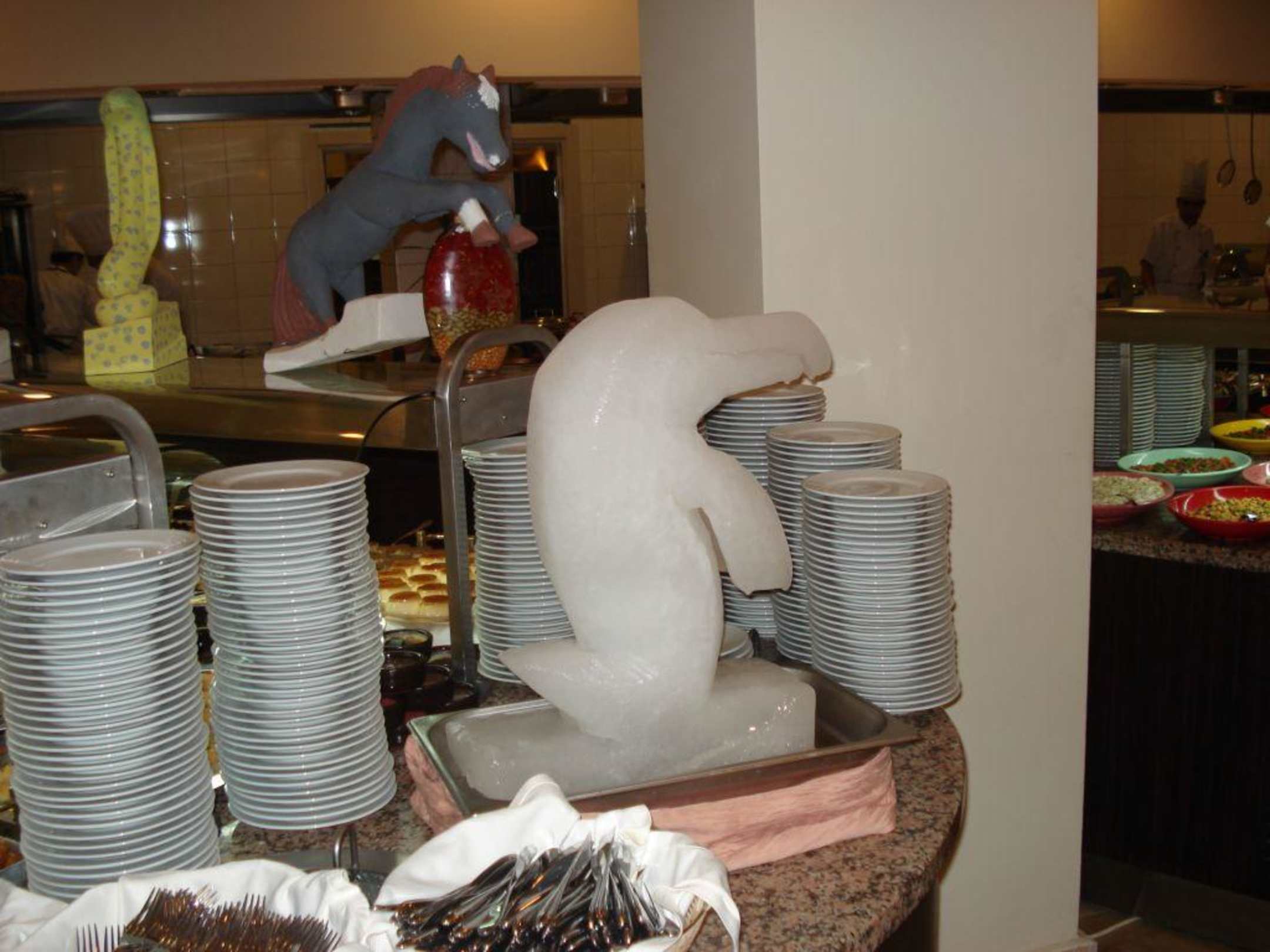 Das Restaurant war mit wunderschönen Eisskulpturen geschmückt
