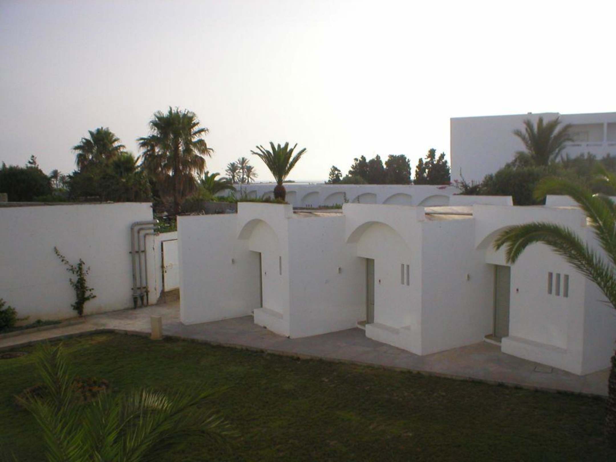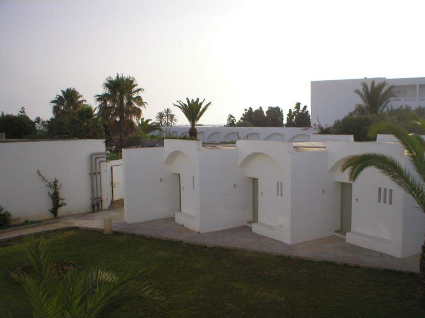 Blick vom Balkon des Haupthauses auf ein paar der Bungalows