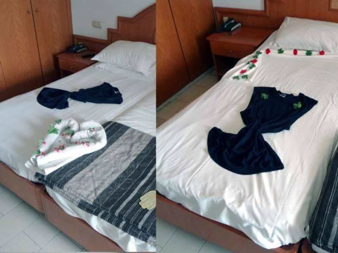 Nette ArrangementsDie Putzfrau erfreute mich auch immer wieder mit netten Arrangements. Was so ein täglicher Dinar auf dem Kopfkissen alles ausmacht.