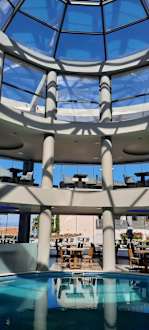 Innenpool mit Gastronomieraum. 1.Etage Lobbybar.