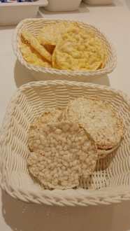 Frühstück - Reiswaffeln (weiß) und Maiswaffeln (gelb)