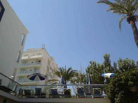 Blick vom Außenbereich der Bar auf einen Teil der Sonnenterasse