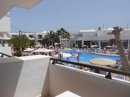Balkon mit Aussicht zum Pool