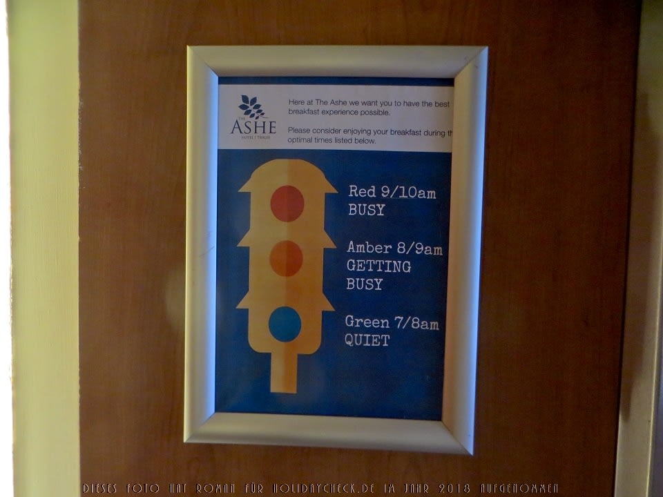 Gerahmtes Schild im Lift mit Angaben zu der erwarteten Frequentierung des Frühstücksbüffets.