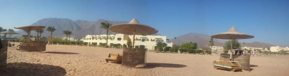 Strand mit Blick auf das Hotel
