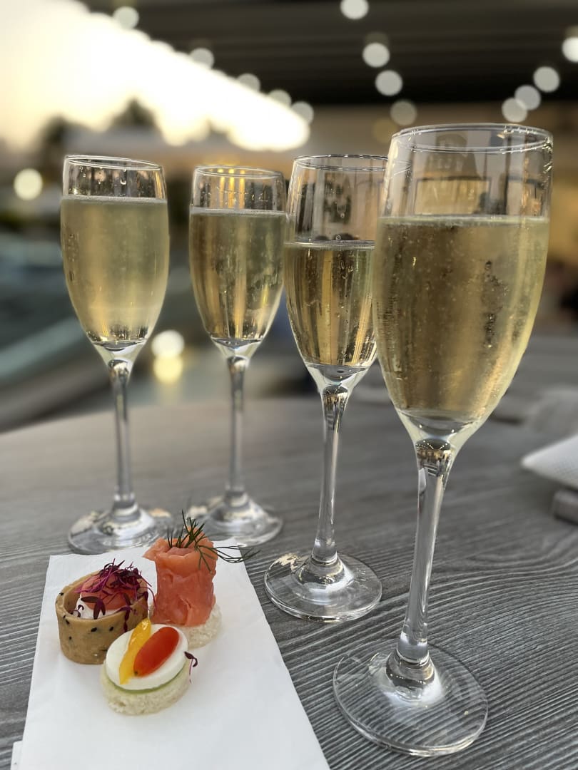 Begrüßung der Hotelgäste durch den General Manager von Nicos, wo er das Hotelpersonal vorstellt. Für die Gäste werden Getränke und Snacks bereitgestellt