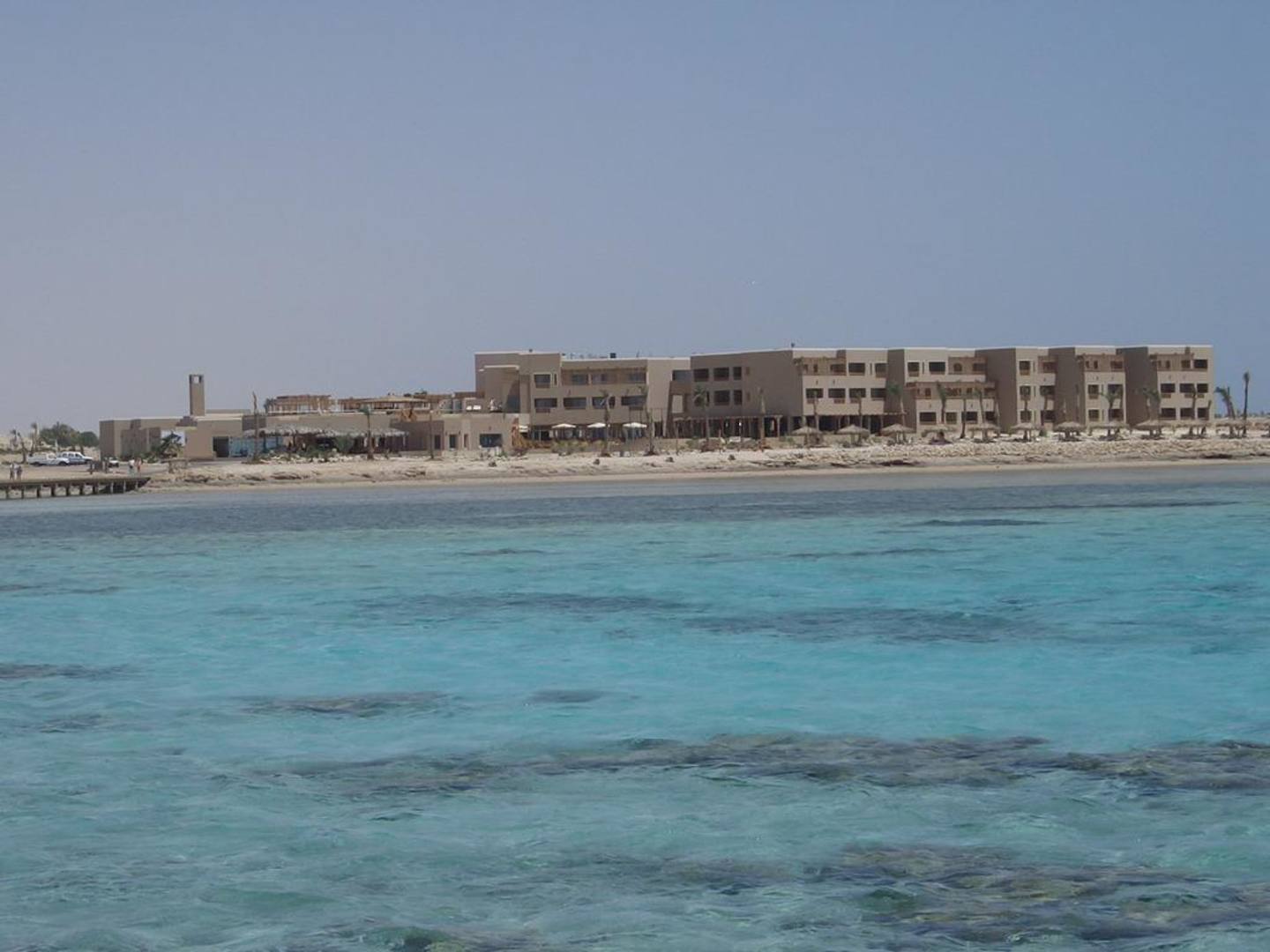 Blick vom langen Steg zum Hotel