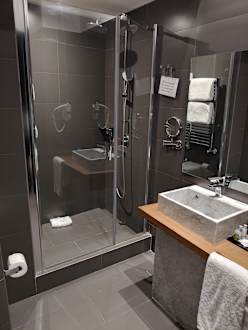 Dusche und Waschbereich