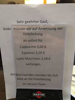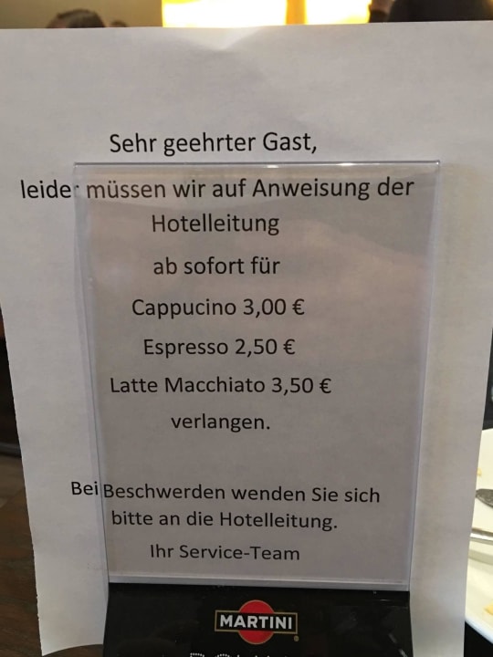 Bei den Zimmerpreisen (174€ in meinem Fall) hat mich diese "Frühstückslektüre" doch schwer erstaunt. Dies ist doch unüblich und passt nicht ins Bild.