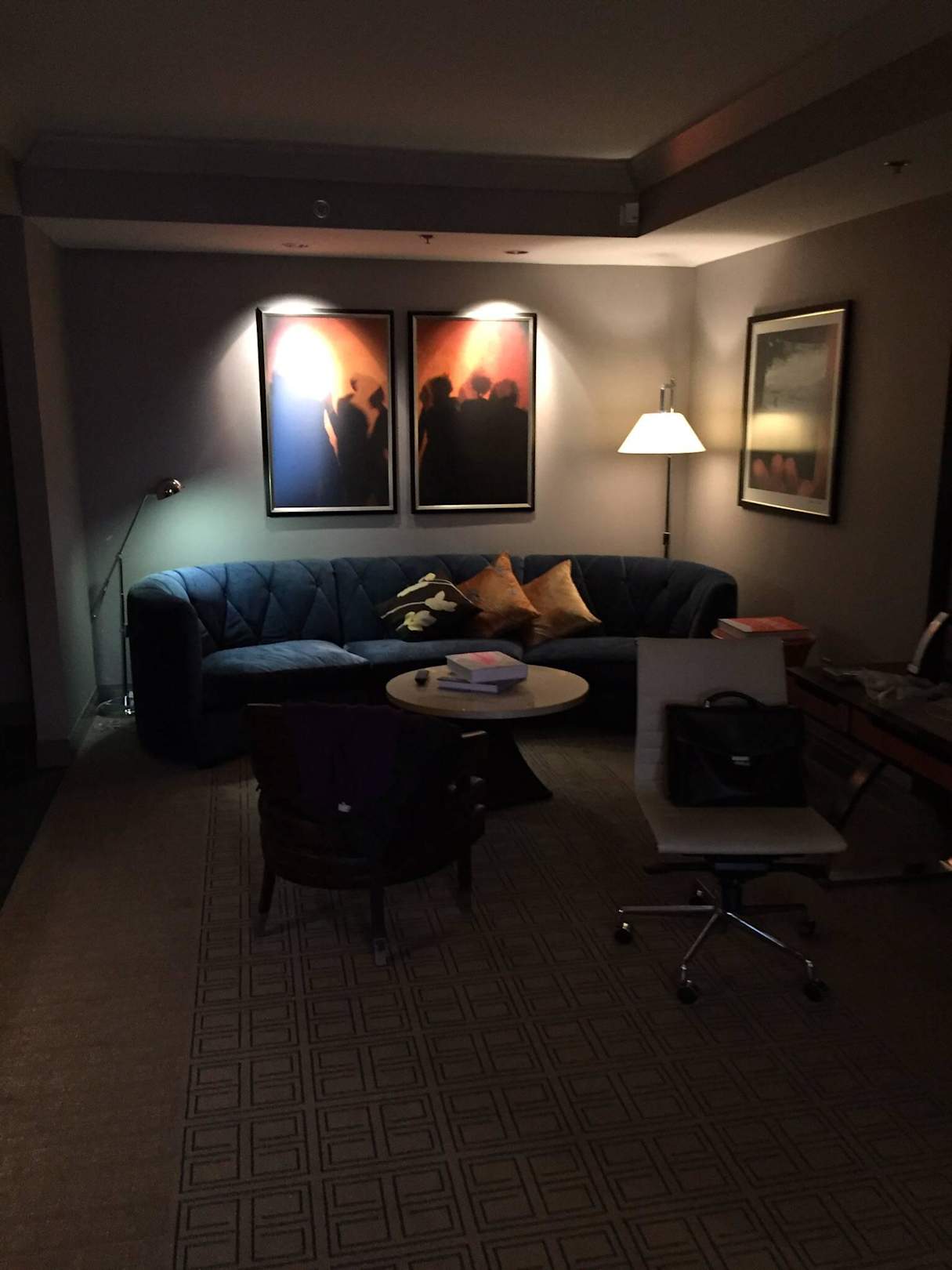 Sitzecke in einer dunklen Ecke des Zimmers ohne vernünftiges Beleuchtungskonzept
