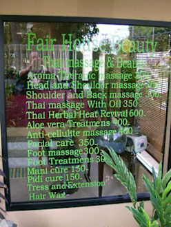 Am Strand mit Blick aufs Meer wurden in einem offenen und überdachten Pavilion gute Massagen, Maniküre, usw. von freundlichen Thailadys angeboten. Kann ich nur weiter empfehlen.