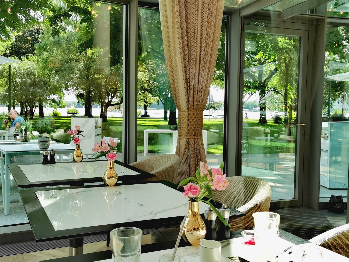 Restaurant Lakeside mit Blick durch den Park zur Außenalster.