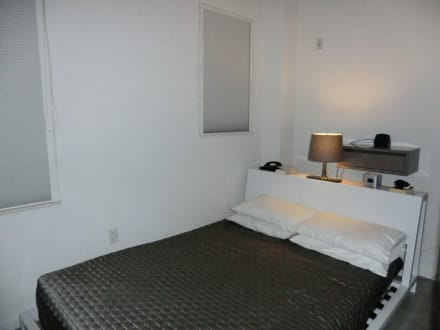 SchlafbereichVom Wohnzimmer durch eine Trennwand - der Schlafbereich mit genügend Stauraum für Kleidung.