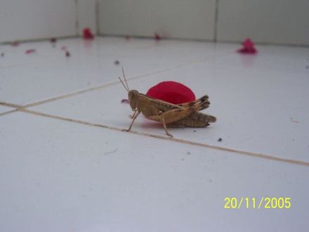 Wer ist nun mehr erschrockenWunderschönes Exemplar einer Heuschrecke auf unserem Balkon - zum Glück ohne ihre Familie...