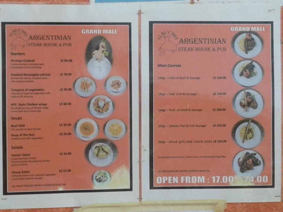 Speisekarte in der Grandmall