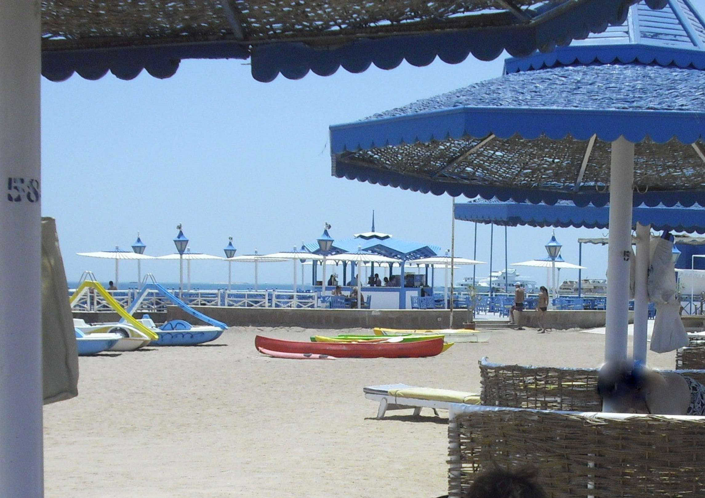 Strandschirm 585 Blick auf die Bar an der Marina
